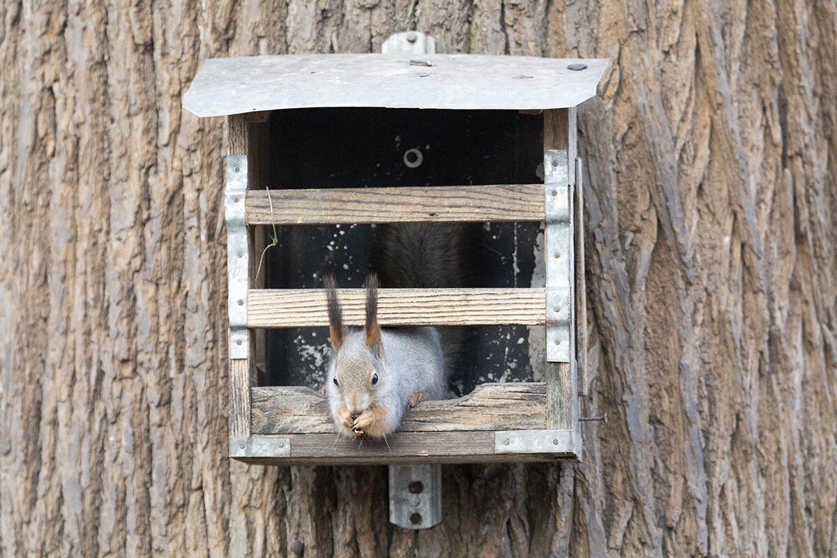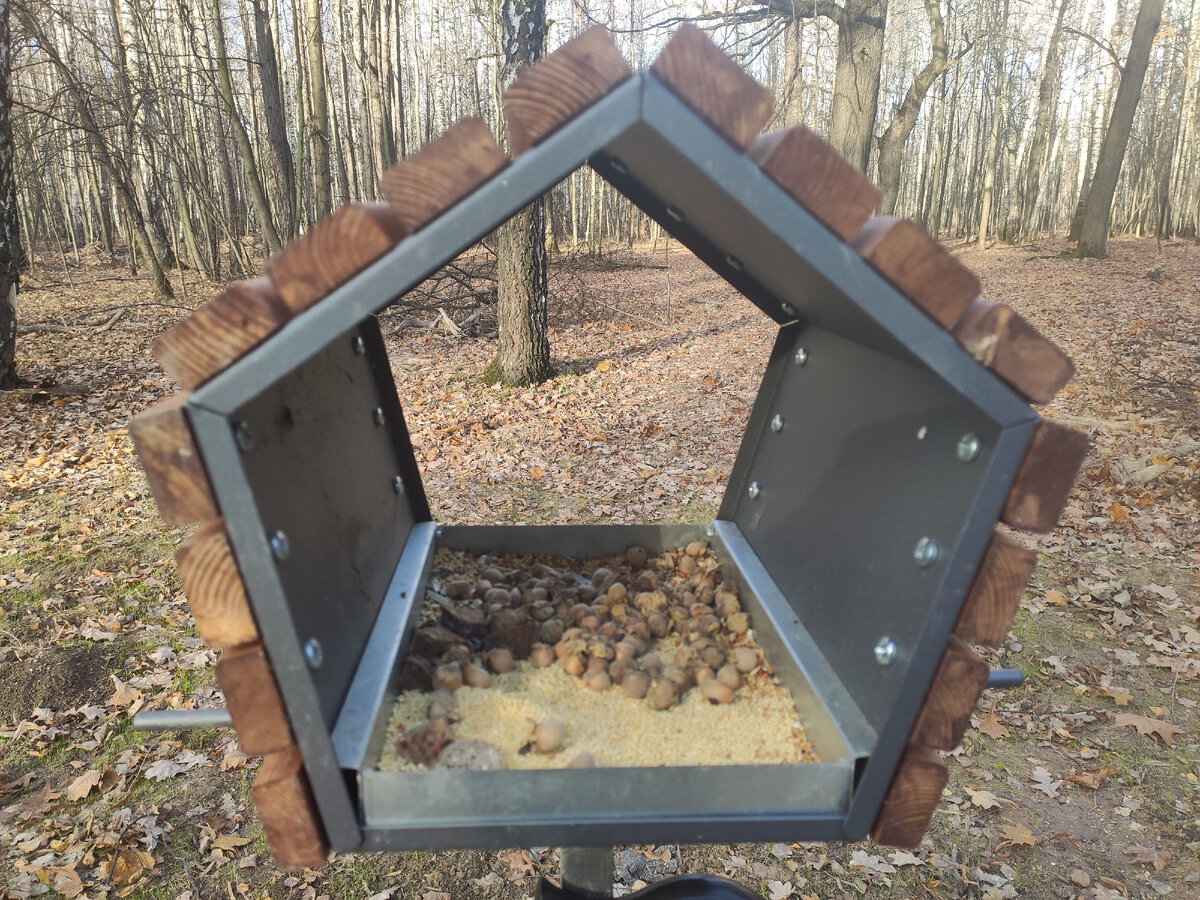 В процессе "реабилитации" по всему парку поставили вот такие кормушки.